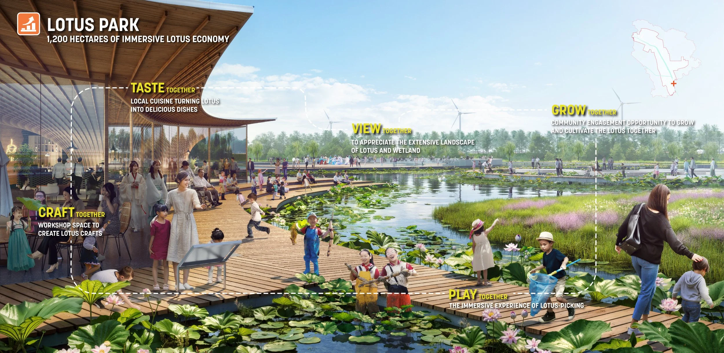An elegant and compelling framework plan that skillfully weaves history and future aspirations. Successfully addresses economic, ecological and cultural issues with specific and large scale interventions.